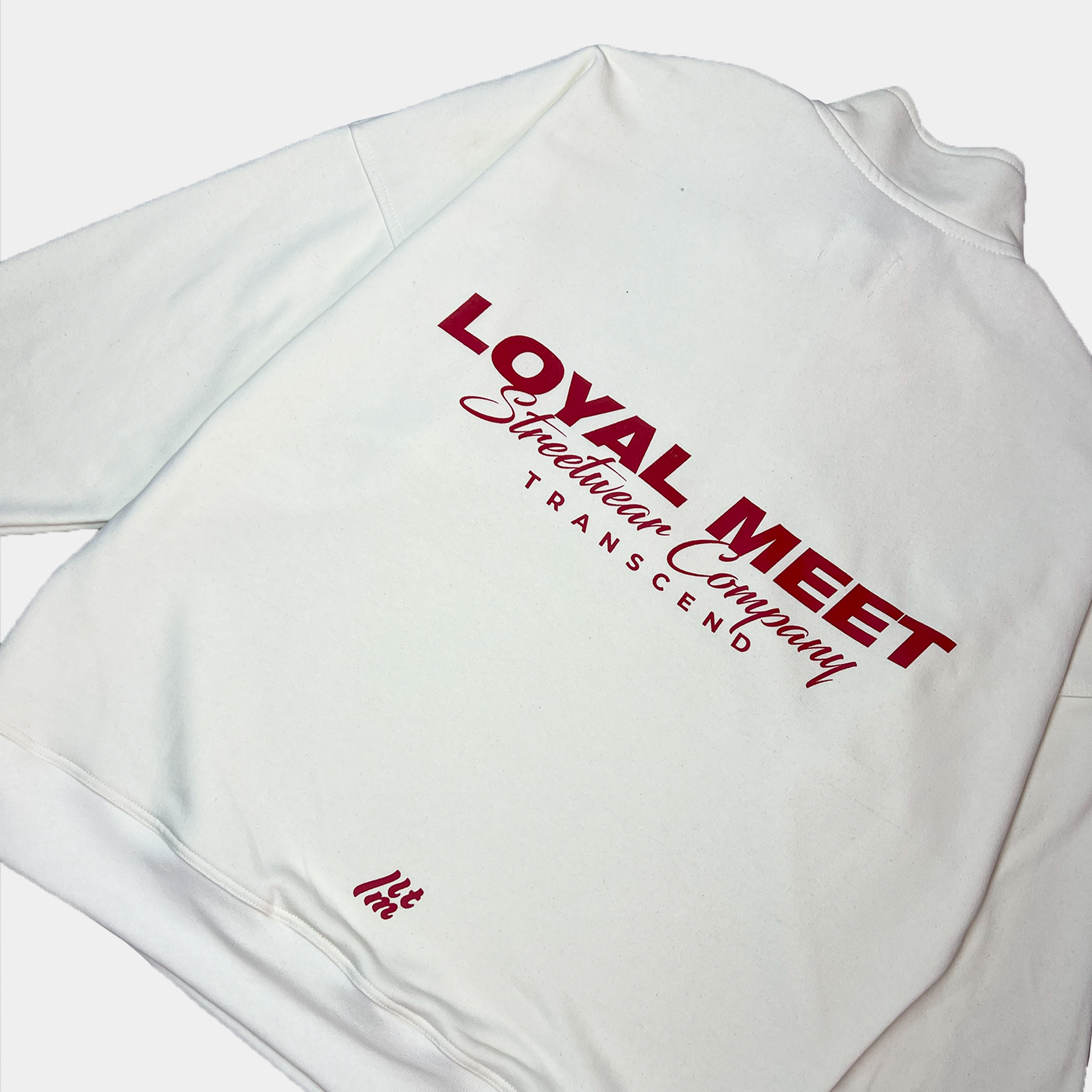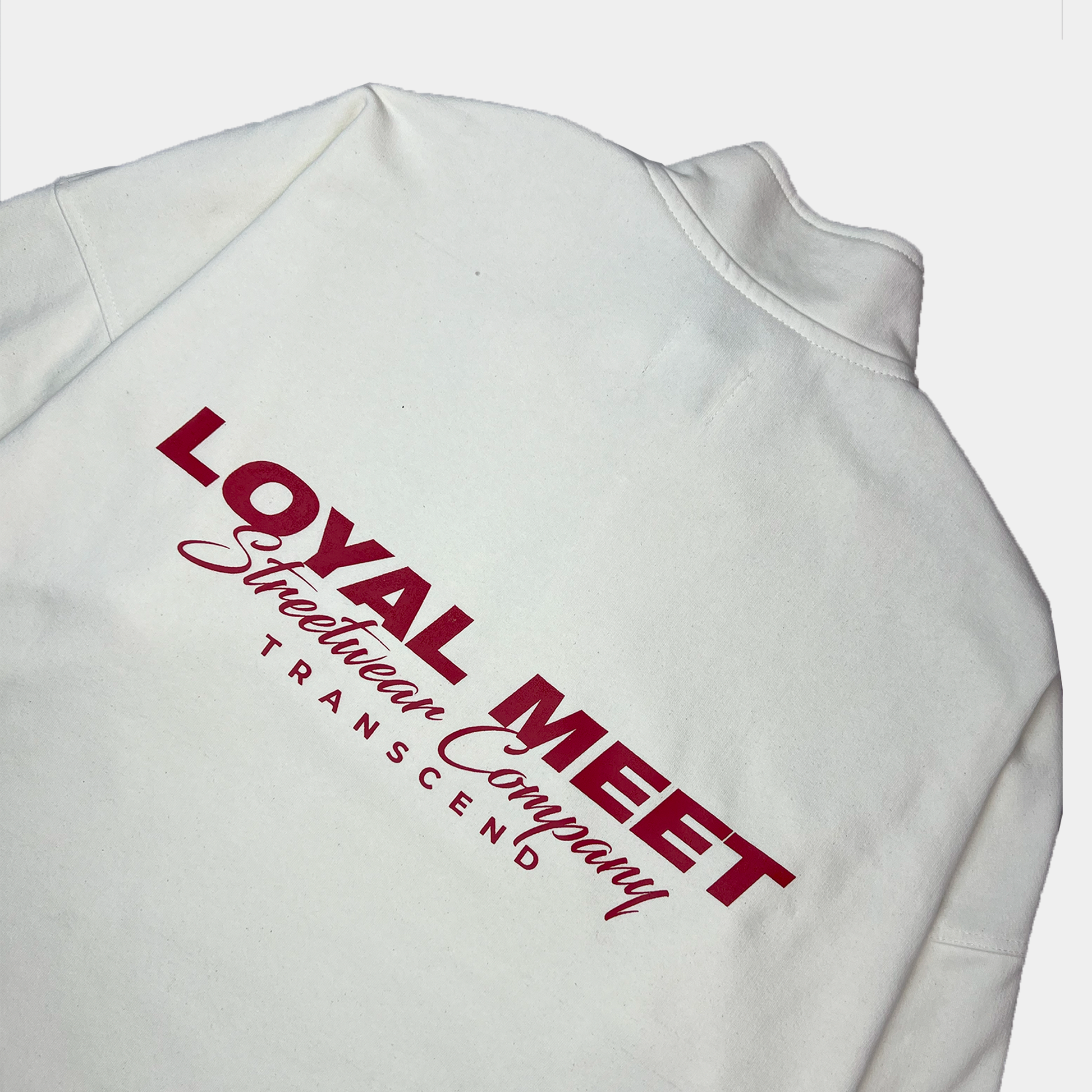 Este buzo media cremallera Mockneck unisex marfil es esta hecho en 100% algodón perchado. Viene con una cremallera en la parte delantera y un estampado en serigrafía de alta densidad para ambos frentes.