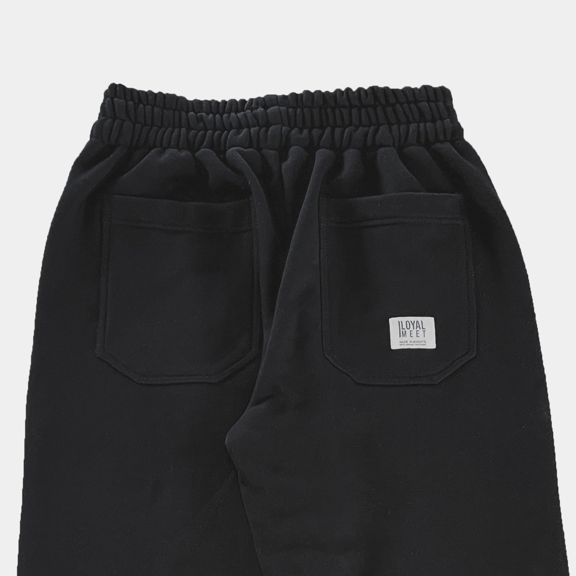 Pantalón baggy con bolsillos laterales y posteriores. Tiene el nombre bordado en el costado derecho sobre la rodilla y cordones ajustables en la cintura. Su silueta es holgada y tiene un detalle de marquilla en el bolsillo trasero.